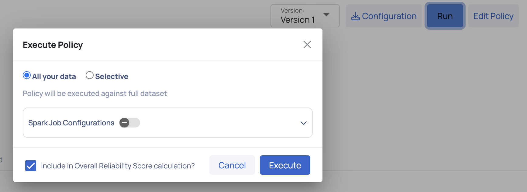 - Click Reliability icon > Click Manage Policies > Click Add Policy > Select Data Quality.