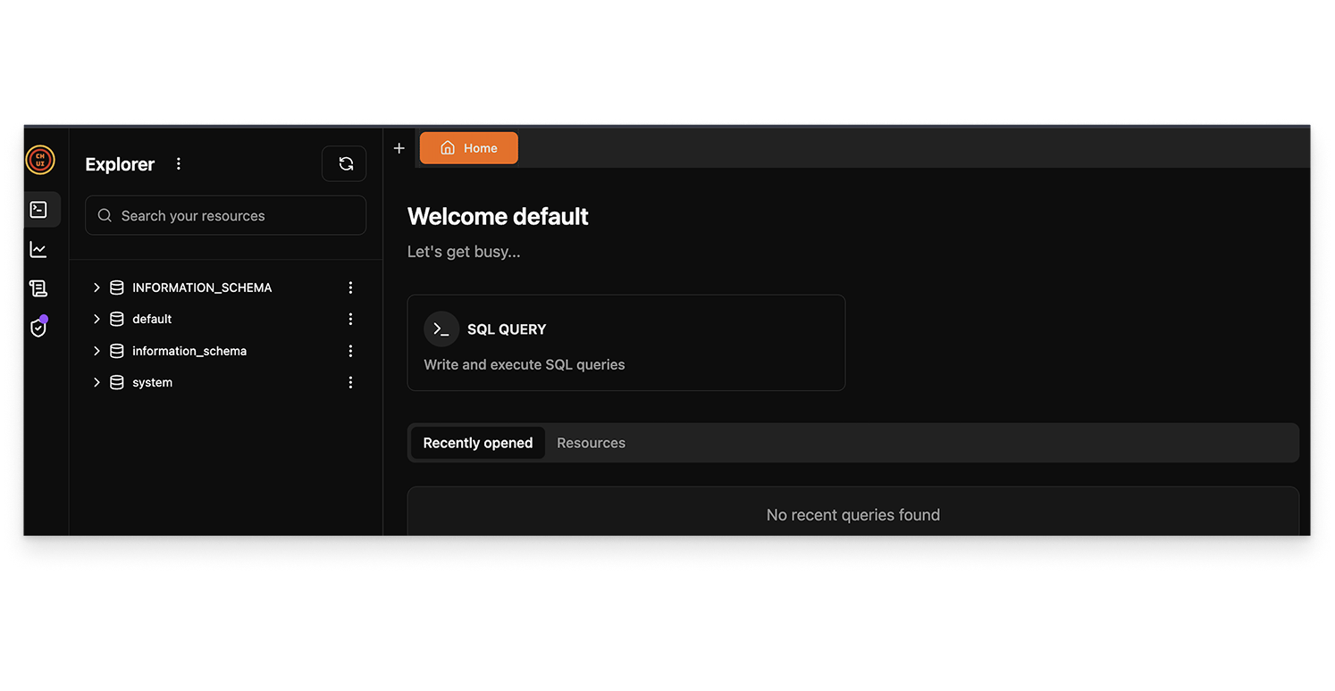 /usr/odp/3.3.6.2-1/clickhouse/bin/clickhouse client --host ck1.acceldata.ce \--user default --port 9000 --secure -c /etc/clickhouse/conf/client/config.xml clickhouse :) CREATE DATABASE db1 ON CLUSTER clicktest;CREATE TABLE db1.cell_towers ON CLUSTER clicktest( radio Enum8('' = 0, 'CDMA' = 1, 'GSM' = 2, 'LTE' = 3, 'NR' = 4, 'UMTS' = 5), mcc UInt16, net UInt16, area UInt16, cell UInt64, unit Int16, lon Float64, lat Float64, range UInt32, samples UInt32, changeable UInt8, created DateTime, updated DateTime, averageSignal UInt8)ENGINE = ReplicatedMergeTree ORDER BY (radio, mcc, net, created);INSERT INTO db1.cell_towers SELECT * FROM s3('https://datasets-documentation.s3.amazonaws.com/cell_towers/cell_towers.csv.xz', 'CSVWithNames');CREATE DATABASE db1 ON CLUSTER clicktestQuery id: ec09666c-b80e-42f6-9a64-9afc5cbb071b ┌─host─────────────┬─port─┬─status─┬─error─┬─num_hosts_remaining─┬─num_hosts_active─┐1. │ ck3.acceldata.ce │ 9000 │ 0 │ │ 2 │ 0 │2. │ ck2.acceldata.ce │ 9000 │ 0 │ │ 1 │ 0 │3. │ ck1.acceldata.ce │ 9000 │ 0 │ │ 0 │ 0 │ └──────────────────┴──────┴────────┴───────┴─────────────────────┴──────────────────┘3 rows in set. Elapsed: 0.078 sec.CREATE TABLE db1.cell_towers ON CLUSTER clicktest( `radio` Enum8('' = 0, 'CDMA' = 1, 'GSM' = 2, 'LTE' = 3, 'NR' = 4, 'UMTS' = 5), `mcc` UInt16, `net` UInt16, `area` UInt16, `cell` UInt64, `unit` Int16, `lon` Float64, `lat` Float64, `range` UInt32, `samples` UInt32, `changeable` UInt8, `created` DateTime, `updated` DateTime, `averageSignal` UInt8)ENGINE = ReplicatedMergeTreeORDER BY (radio, mcc, net, created)Query id: 42e37ebf-b699-4d16-9981-667f9dc567db ┌─host─────────────┬─port─┬─status─┬─error─┬─num_hosts_remaining─┬─num_hosts_active─┐1. │ ck2.acceldata.ce │ 9000 │ 0 │ │ 2 │ 1 │2. │ ck3.acceldata.ce │ 9000 │ 0 │ │ 1 │ 1 │3. │ ck1.acceldata.ce │ 9000 │ 0 │ │ 0 │ 0 │ └──────────────────┴──────┴────────┴───────┴─────────────────────┴──────────────────┘3 rows in set. Elapsed: 0.120 sec.INSERT INTO db1.cell_towers SELECT *FROM s3('https://datasets-documentation.s3.amazonaws.com/cell_towers/cell_towers.csv.xz', 'CSVWithNames')Query id: a3a73cc0-69f2-40b8-a957-c016e96d1b9aOk.0 rows in set. Elapsed: 61.555 sec. Processed 43.28 million rows, 742.49 MB (703.05 thousand rows/s., 12.06 MB/s.)Peak memory usage: 262.36 MiB.Web UI