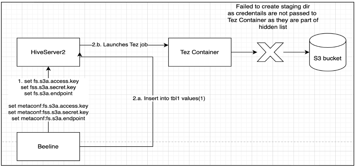 - Tez containers cannot create staging directories in S3A table locations.