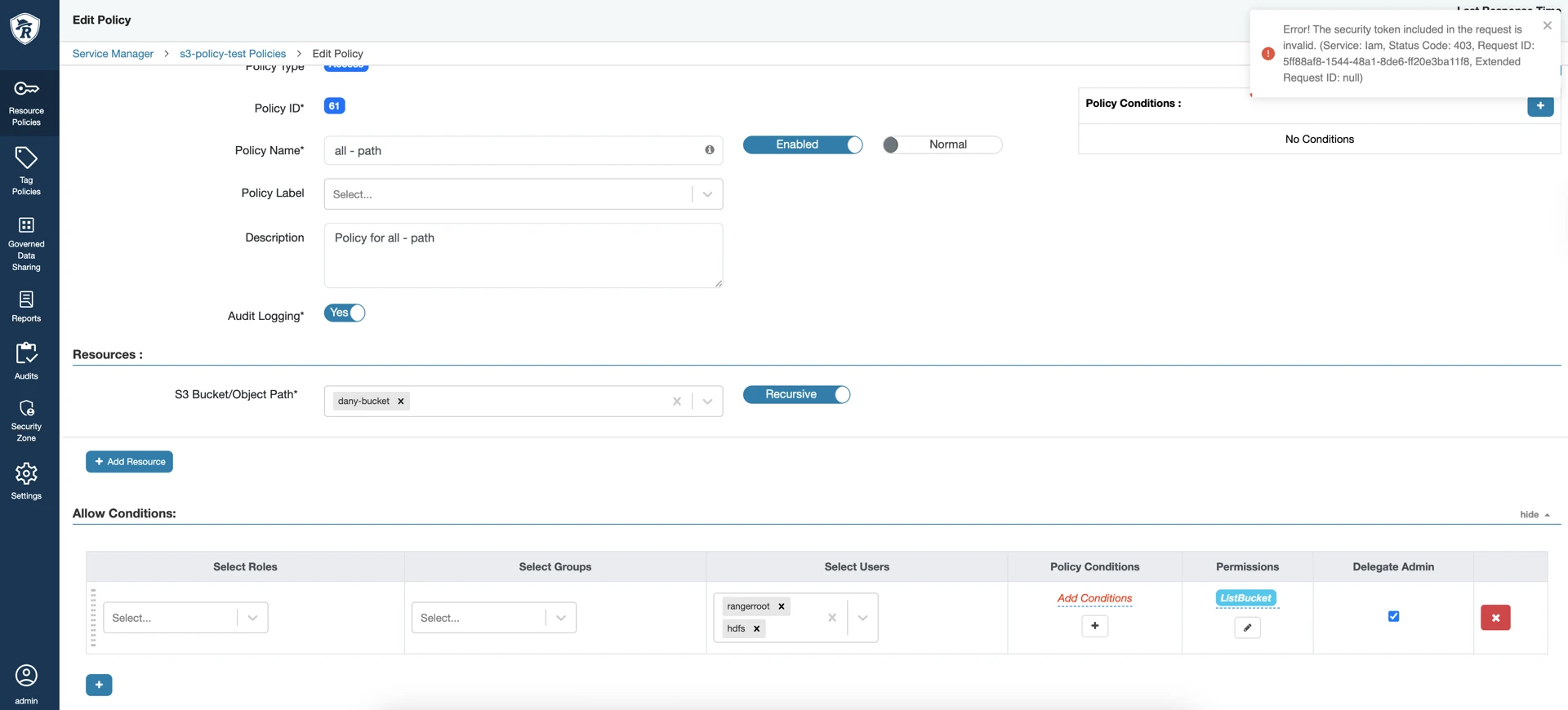 Ranger Policy Creation for Ceph Fails with “IAM Invalid Token” Error