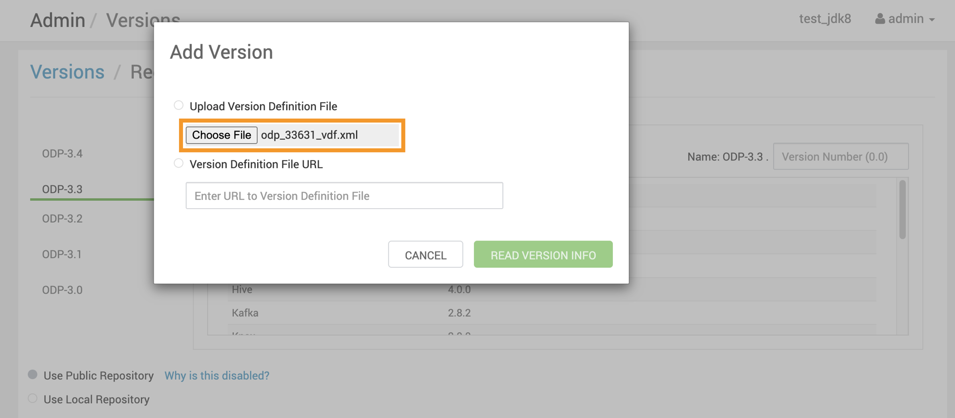 - Upload the 3.3.6.3-1 VDF ODP file and click Read Version Info.