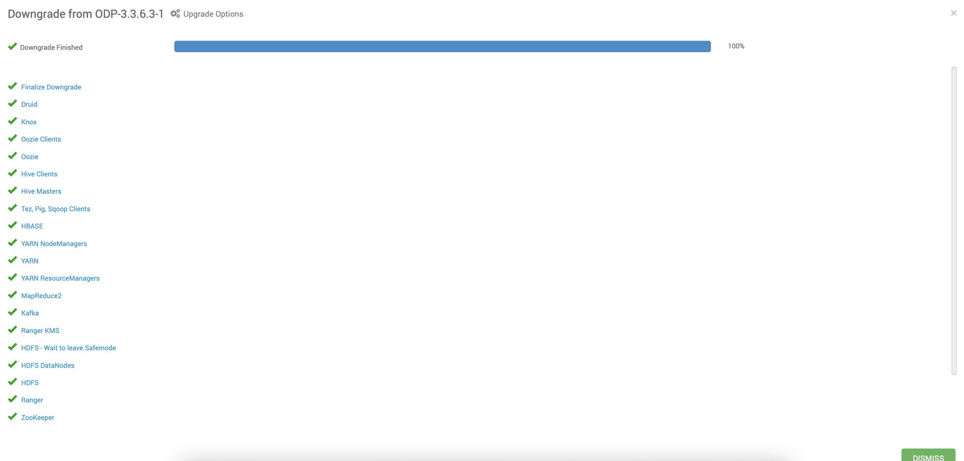 - Reset the ODP stack configurations to the previous version (before the upgrade).