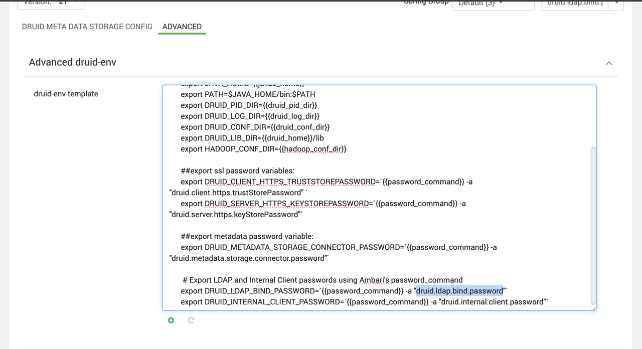 - Navigate to Druid → Configs → Advanced → Advanced druid-env