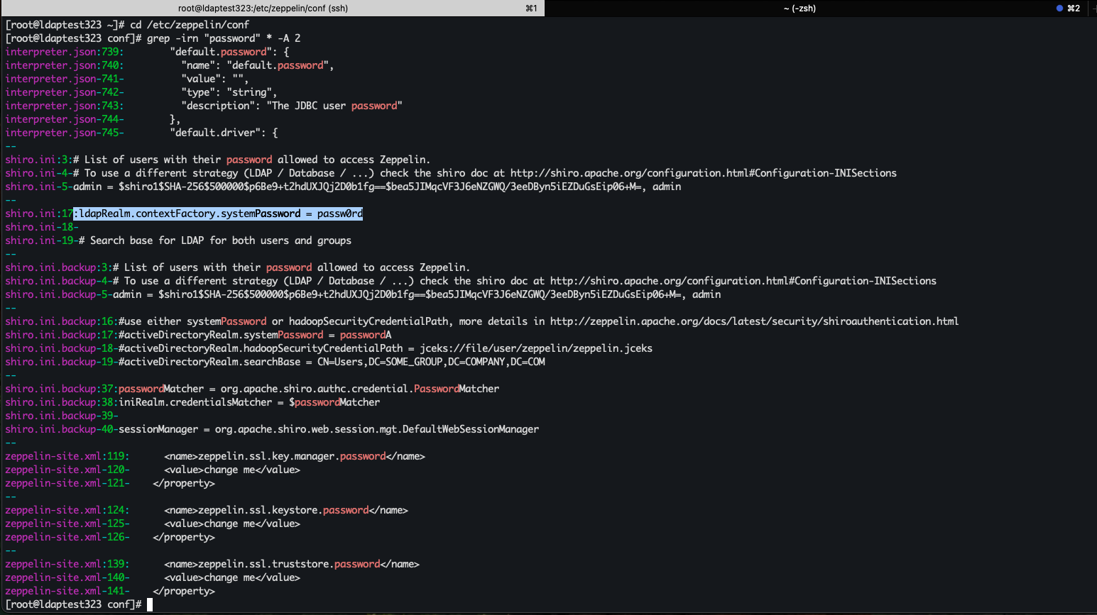 /var/log/zeppelin/zeppelin-server.log- Confirm no plain-text password exists in