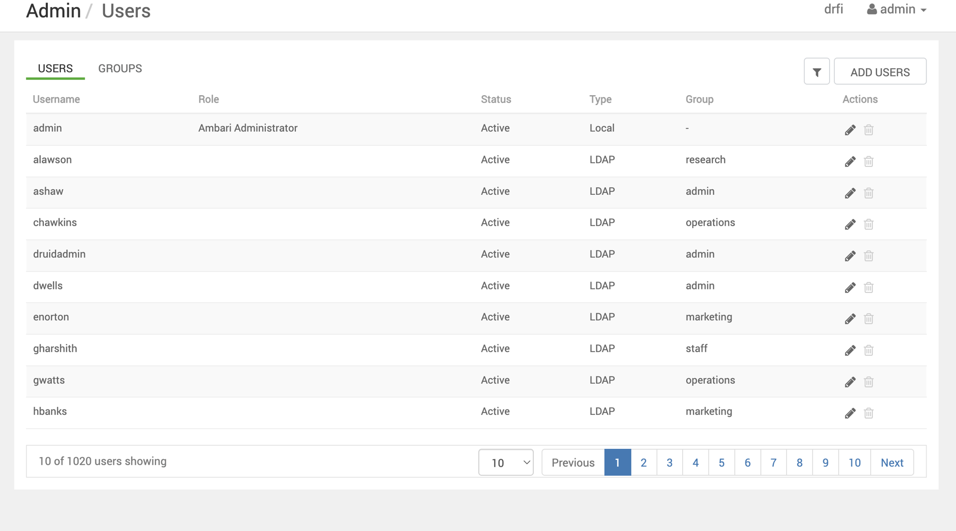 The screenshot below is a reference to the users available to Zeppelin.