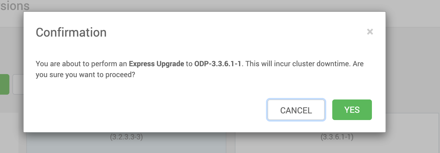 - Select YES to confirm the Express Upgrade to ODP-3.3.6.1-1.
