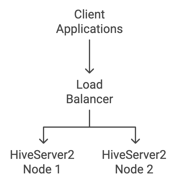 This diagram illustrates the flow of client requests through the load balancer to the HiveServer2 nodes.