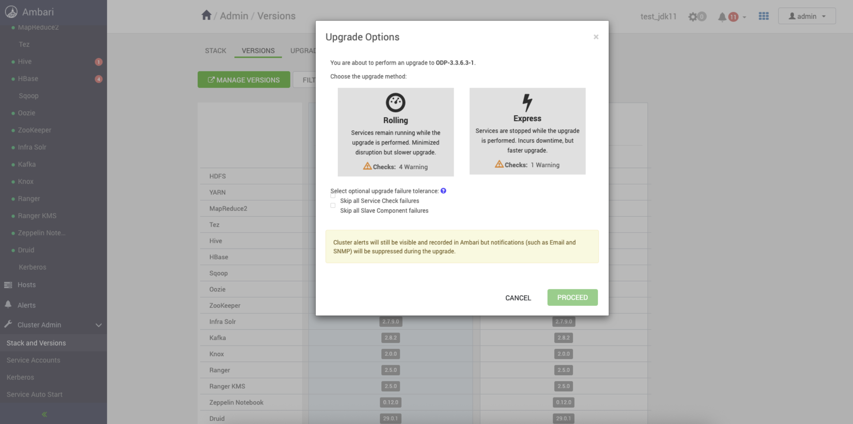 - Click YES to continue with the Express Upgrade to ODP-3.3.6.3-1.
