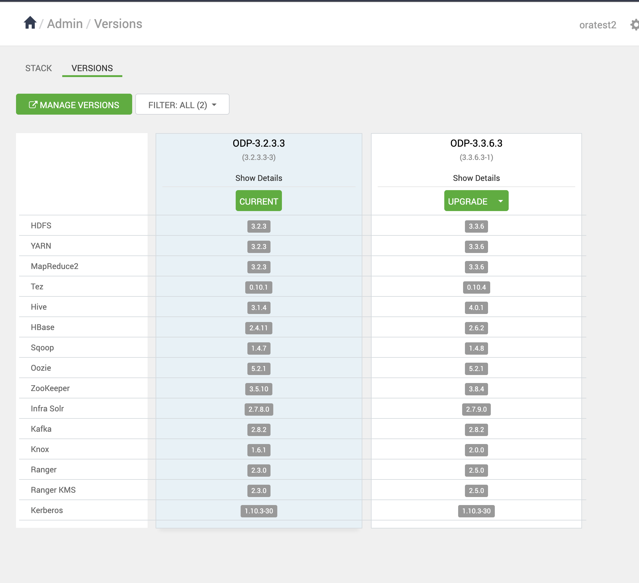 - After installing the packages, you can see the Upgrade option on the Versions page. Click Upgrade to proceed further.
