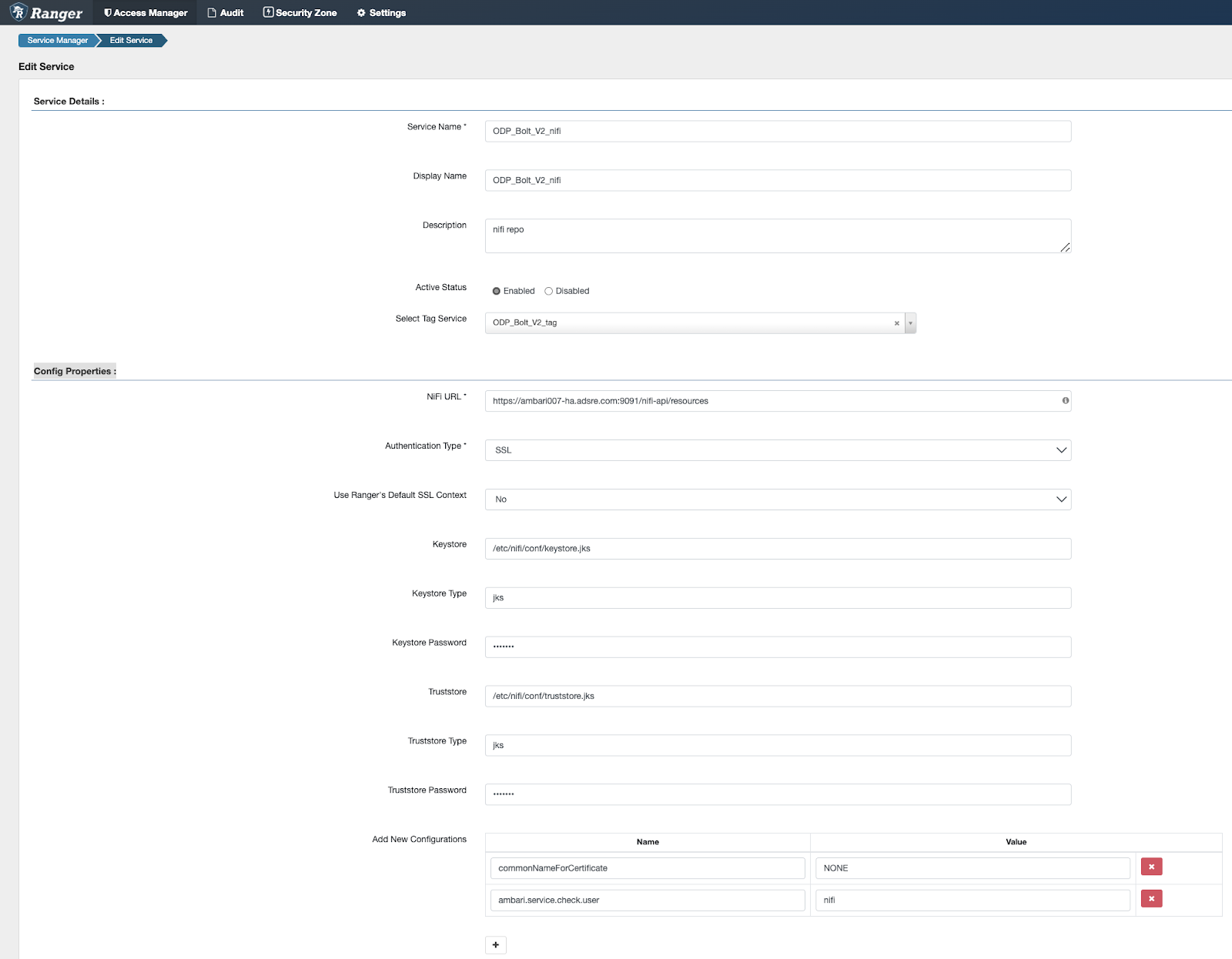 → Configurations to Review: Log into the Ranger UI -> Edit NiFi Service Repo, and review the following: