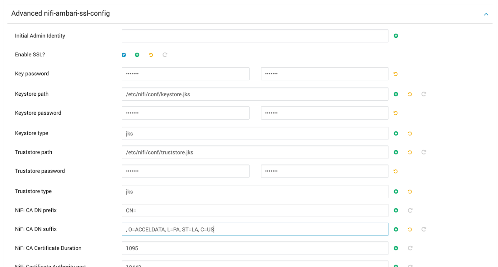 Example: [CN=ambari007-ha.adsre.com, O=ACCELDATA, L=PA, ST=LA, C=US]
