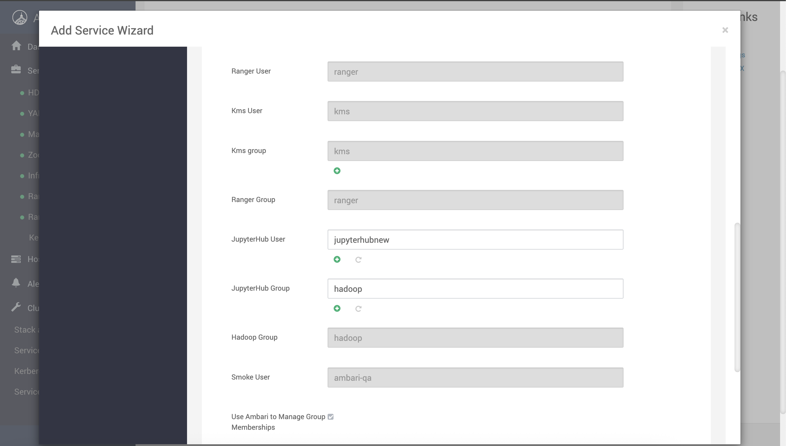 During installation, you can change the service user while configuring JupyterHub from the MISC tab at the top of the page, alongside other installed services.