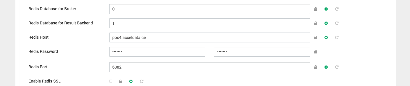 You will be able to see configs as shown in above image, set the celery broker, databases, hostname, password (IF), port and SSL according to your redis setup and airflow will start using that as celery broker and resultDB