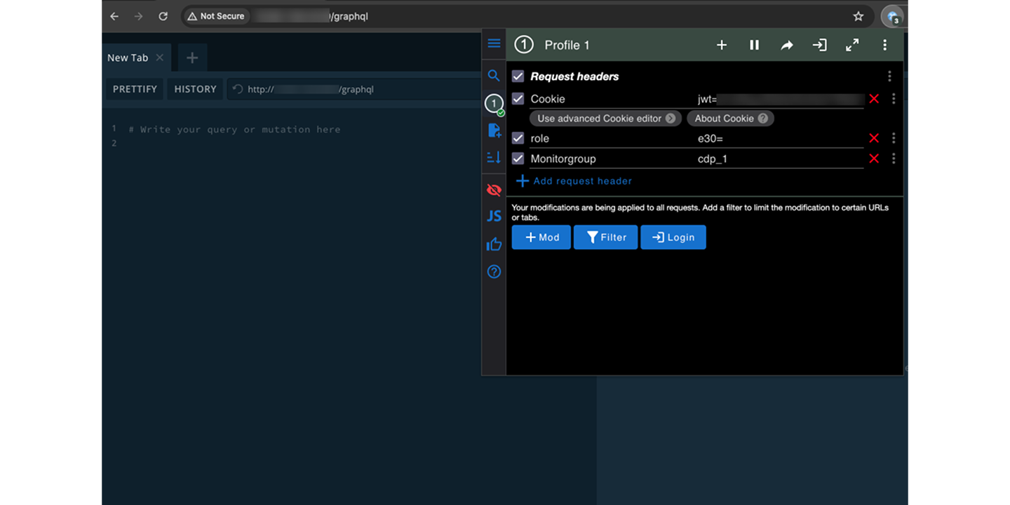 If the cookies are valid, the GraphQL Playground opens successfully.