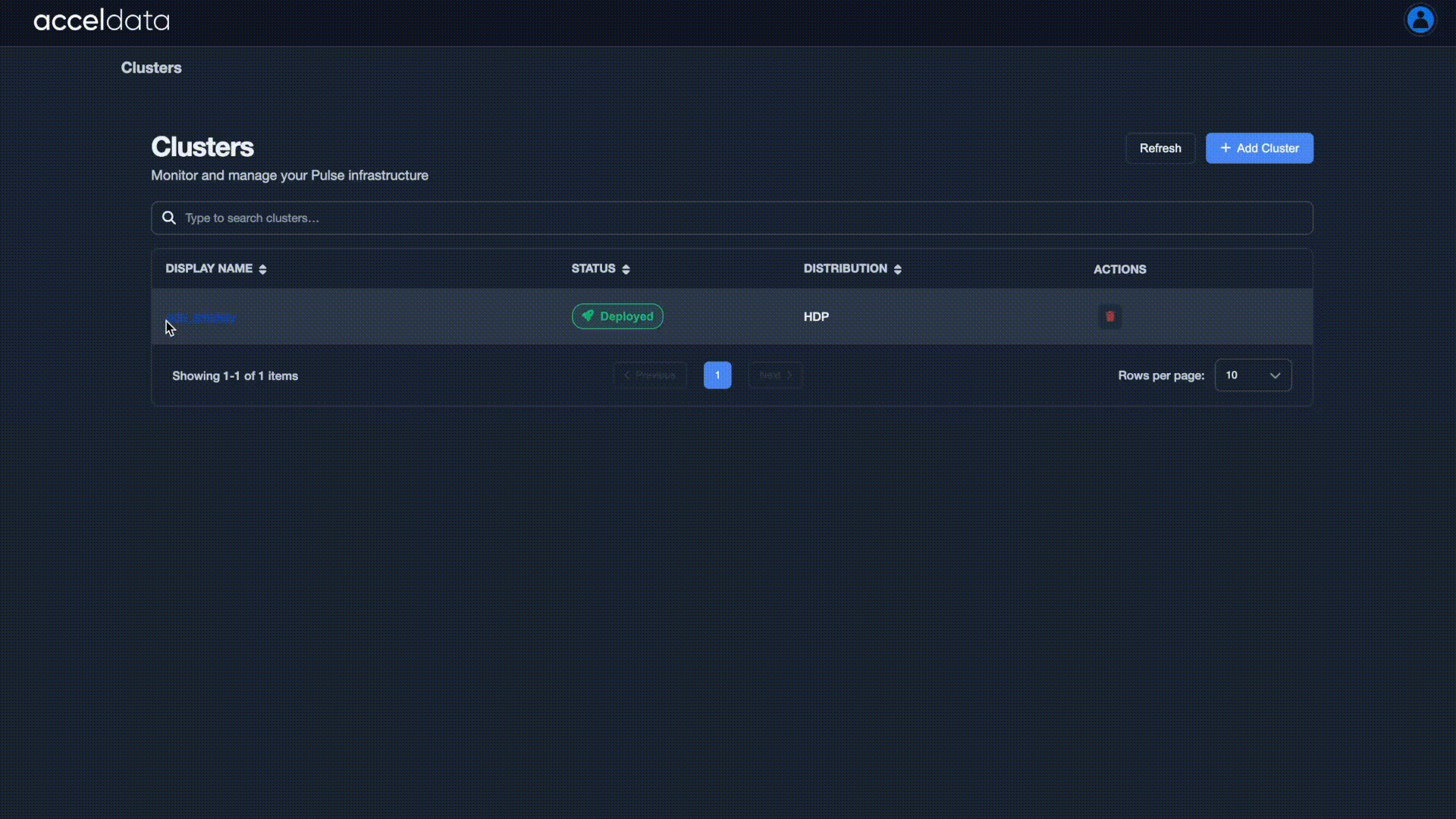 - Click the name of the cluster you want to manage.