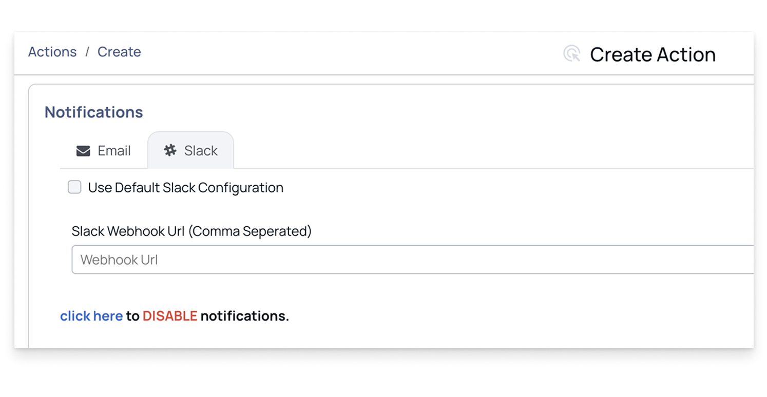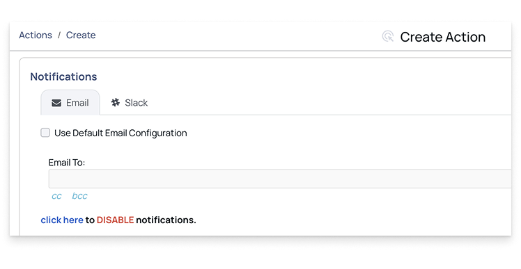 - On the Create Action page, go to the Notifications section.