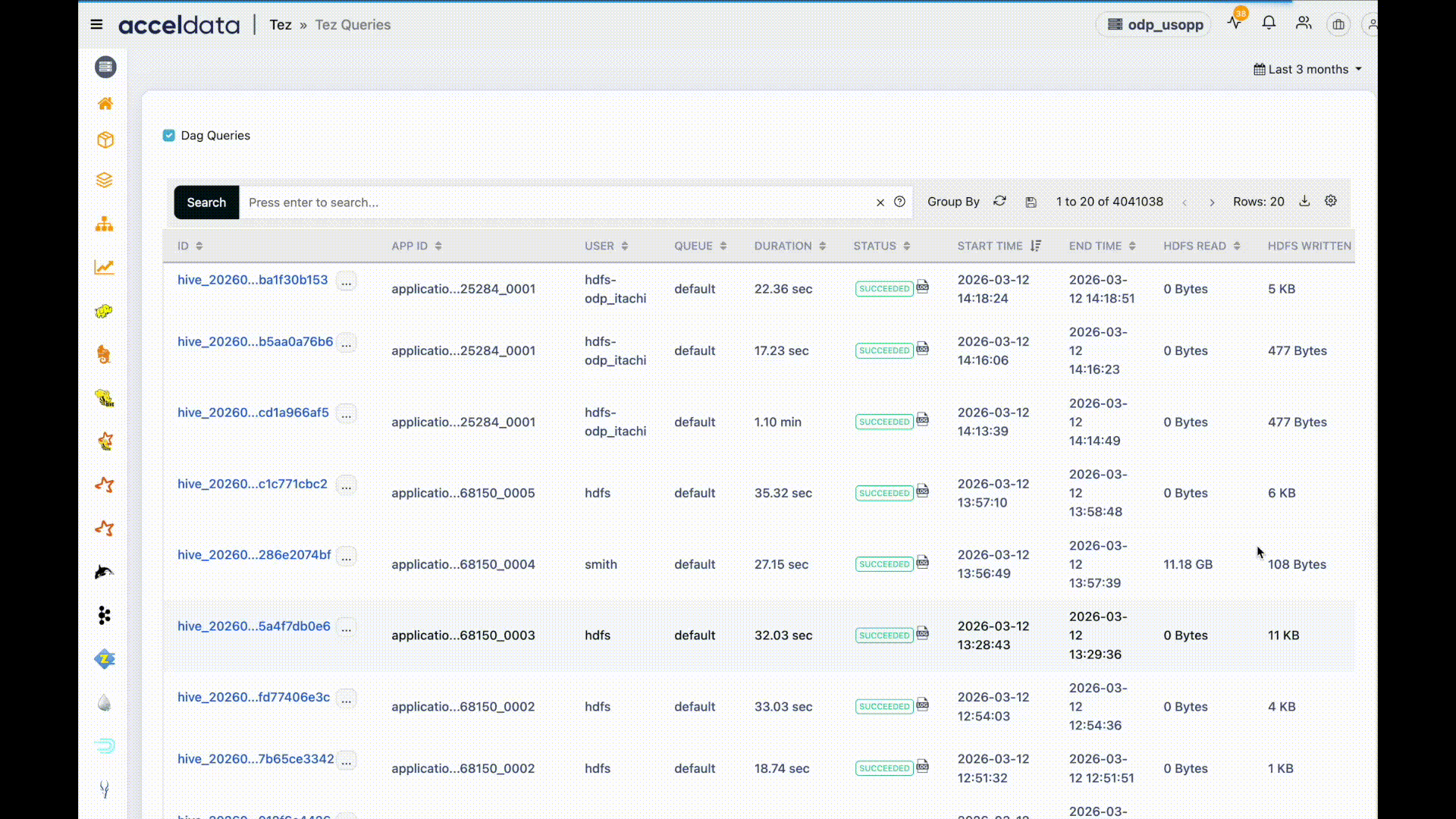 You can download records from any Pulse UI page for offline analysis. For example, you can download records from pages such as Impala Queries, YARN Applications, Spark Jobs, etc.