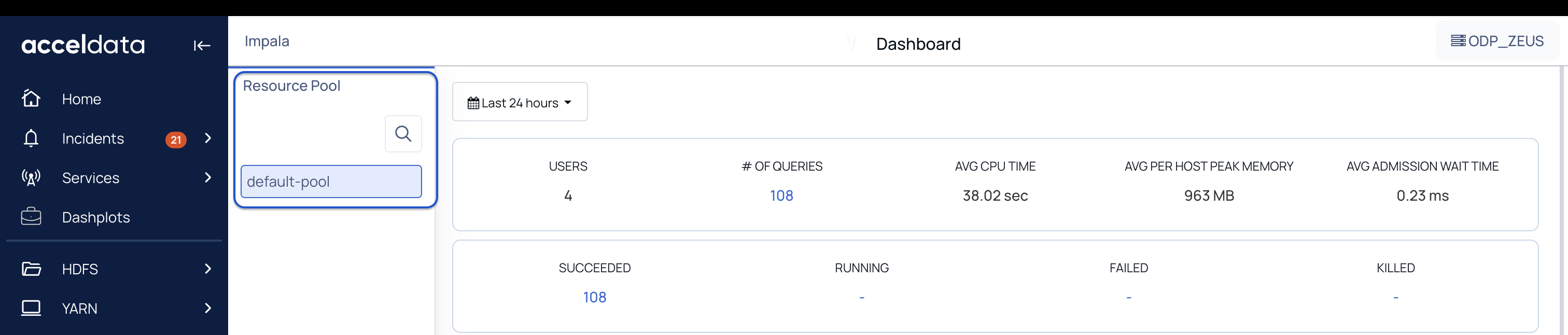 | Succeeded | The number of queries executed successfully. To view Impala Query Details, click on the number. |