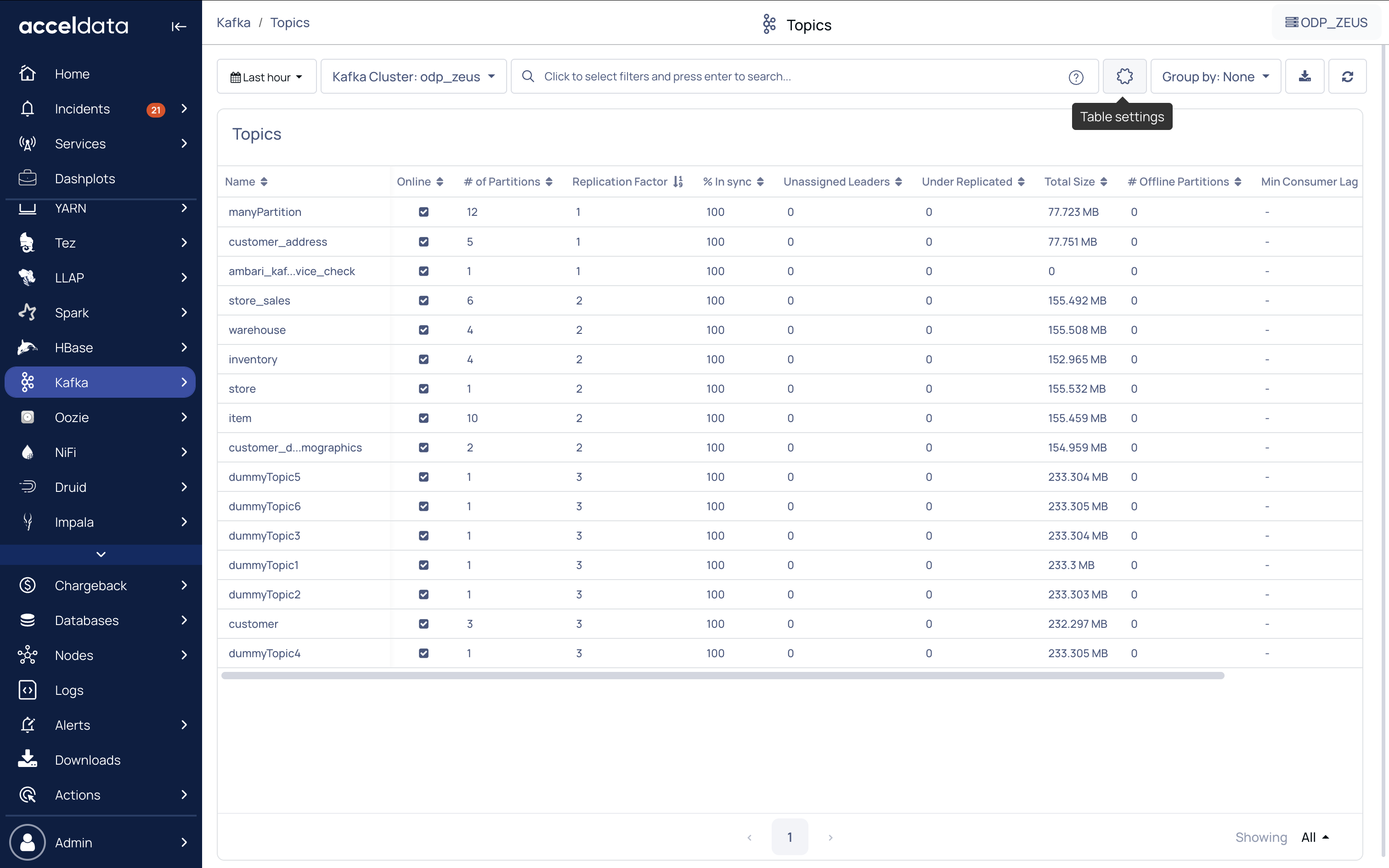 A Topic is a unit or component where streaming and publishing data is stored. Multiple streaming data can be stored and can be published to one or more channels or consumers. The Kafka Topics dashboard displays a list view of all topics created in the Kafka cluster.