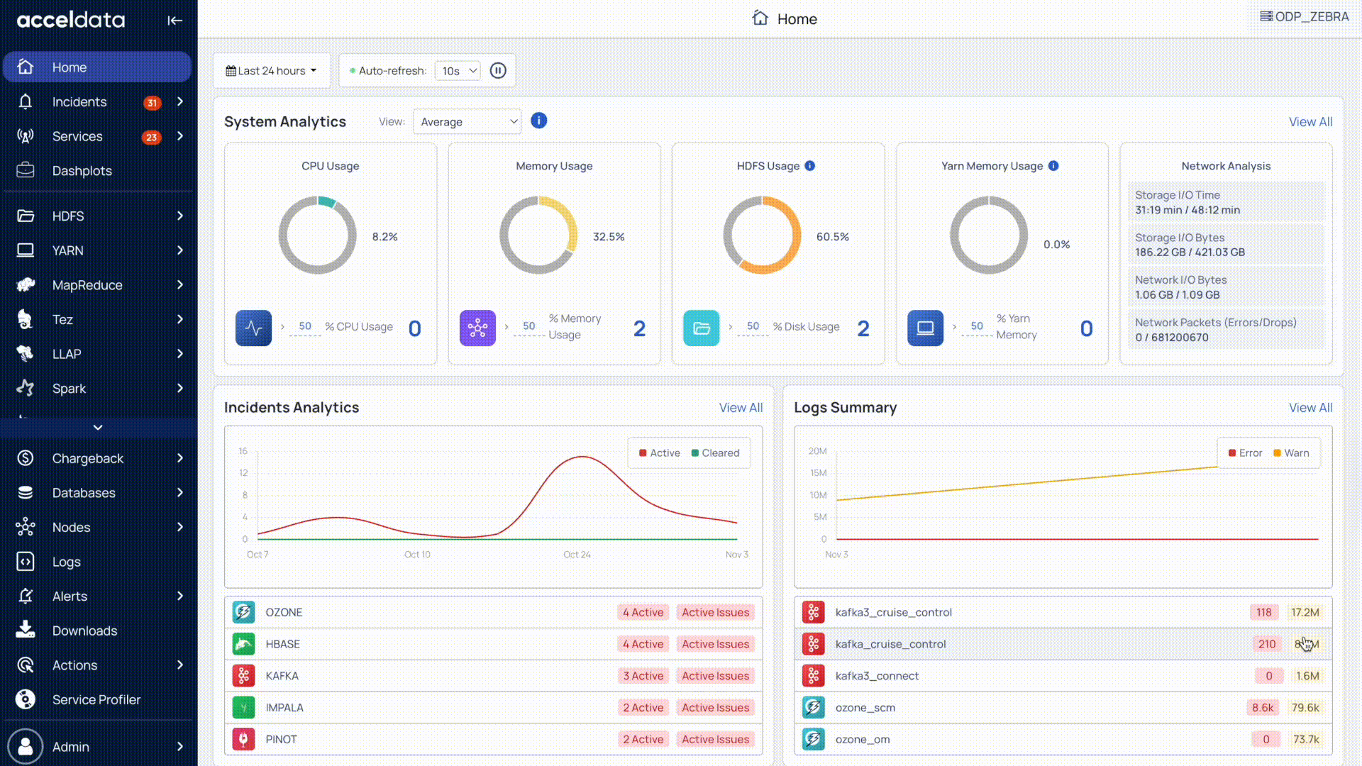 The Incidents Analytics section tracks and categorizes issues across your cluster.