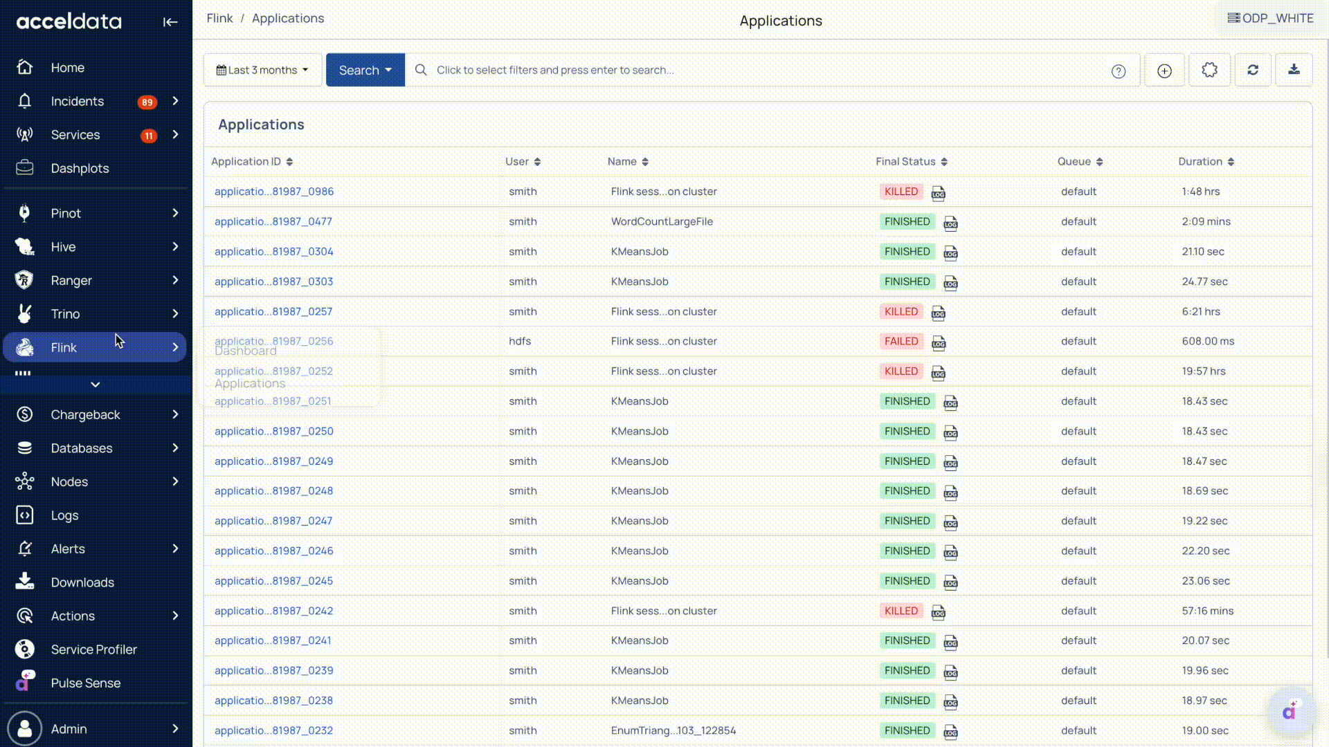 - Session Mode (Shared Cluster): Multiple jobs share the same cluster and application ID. Pulse provides visibility into each job’s performance, resource usage, and status within the shared environment.