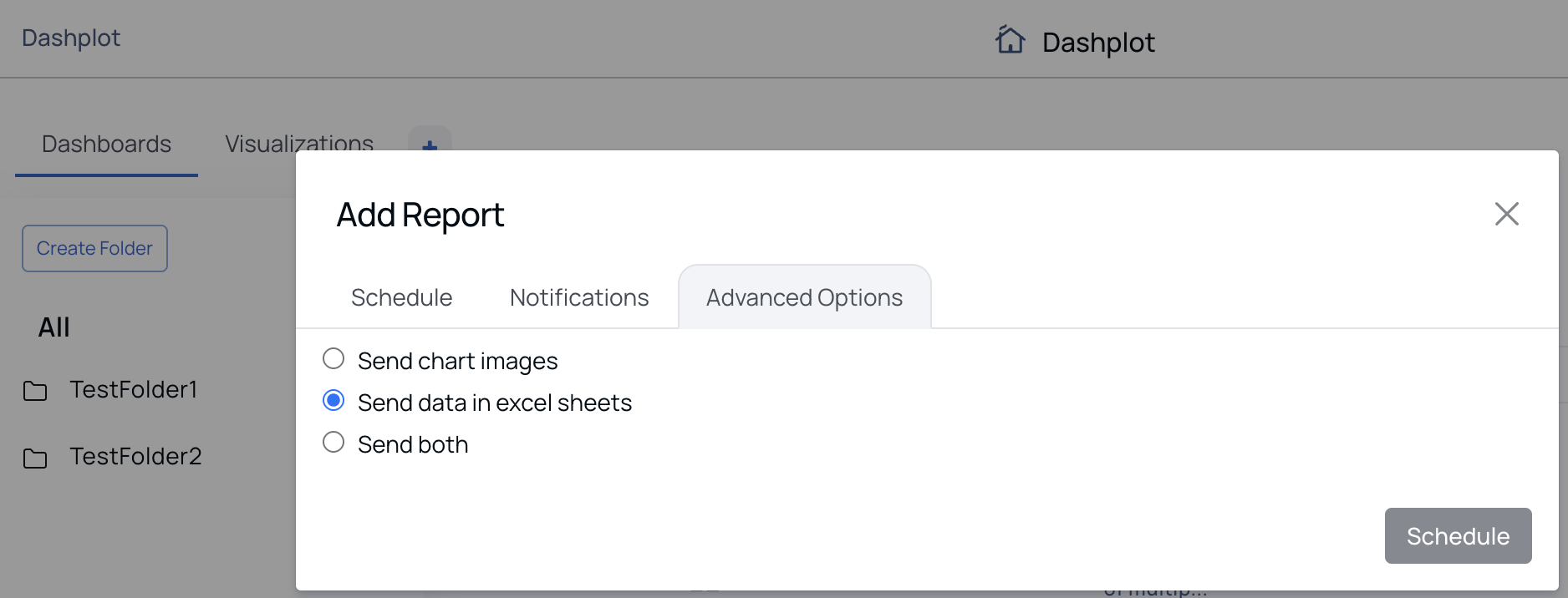 You can create reports on Visualization or Dashboards. Once you add and configure a report on dashboard or visualizations, you can schedule the frequency at which you wish to receive Reports as Emails. You can create multiple reports on Dashboards and Visualizations.