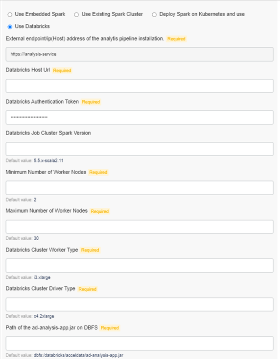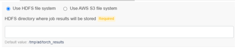 - ** Use HDFS file system: The only input required is the HDFS directory where job results will be stored (Default: /tmp/ad/torch_results).
