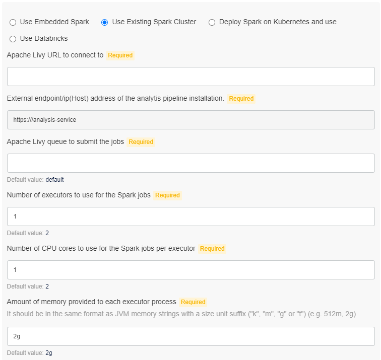 - Use Existing Spark Cluster: If there is an existing Hadoop cluster with Apache Spark installed, then Torch can run the jobs inside the cluster. It is required to have Apache Livy installed as well. Torch connects to Livy using HTTP and submits the Spark jobs. Inputs required: