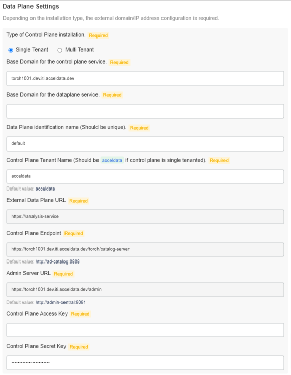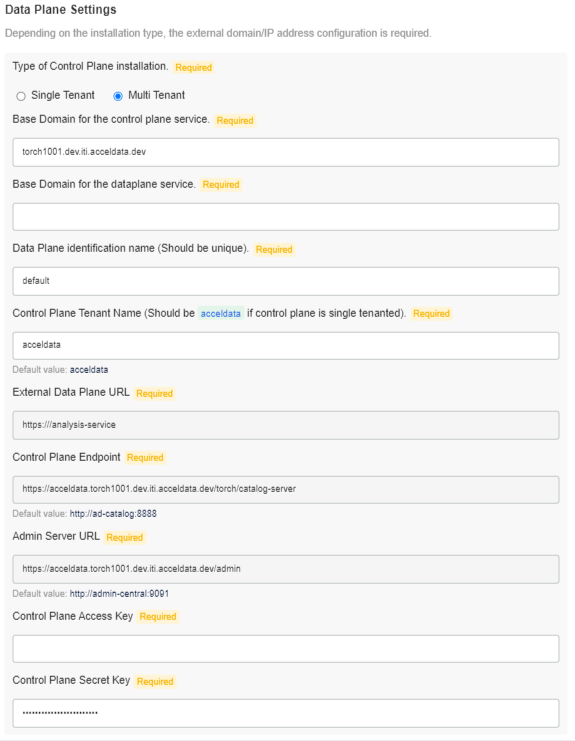 - Base Domain for the control plane service: Control Plane’s FQDN. Data Plane will register itself to the Control Plane available at this URL