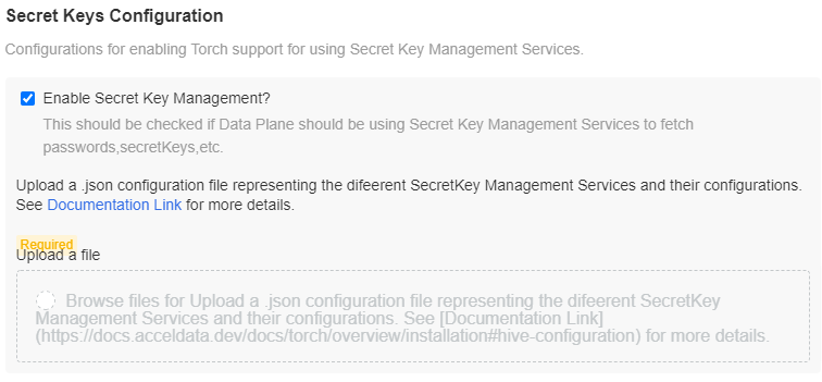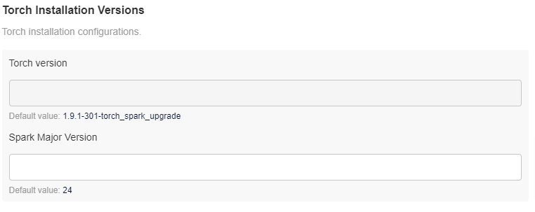 This tab displays the current Acceldata Torch version that is to be installed. This is a read-only configuration for reference. It also displays the Spark Major Version.